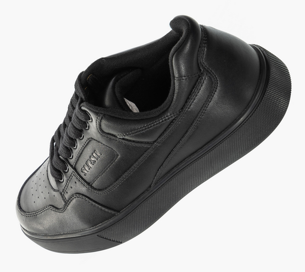 - Нескользящая подошва цельнолитого типа обеспечена небольшим подъемом в области пятки.