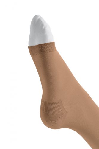Одна пара гольфов mediven ulcer с давлением на уровне лодыжек 20 мм рт. ст. служит для обеспечения круглосуточной компрессии. Такое умеренное давление покоя хорошо переносится пациентами в течение 24 часов. Обновленный мягкий и приятный для кожи материал белого цвета с антимикробным эффектом препятствует размножению микроорганизмов и образованию характерного запаха, обеспечивая высокий уровень комфорта при круглосуточном использовании.
