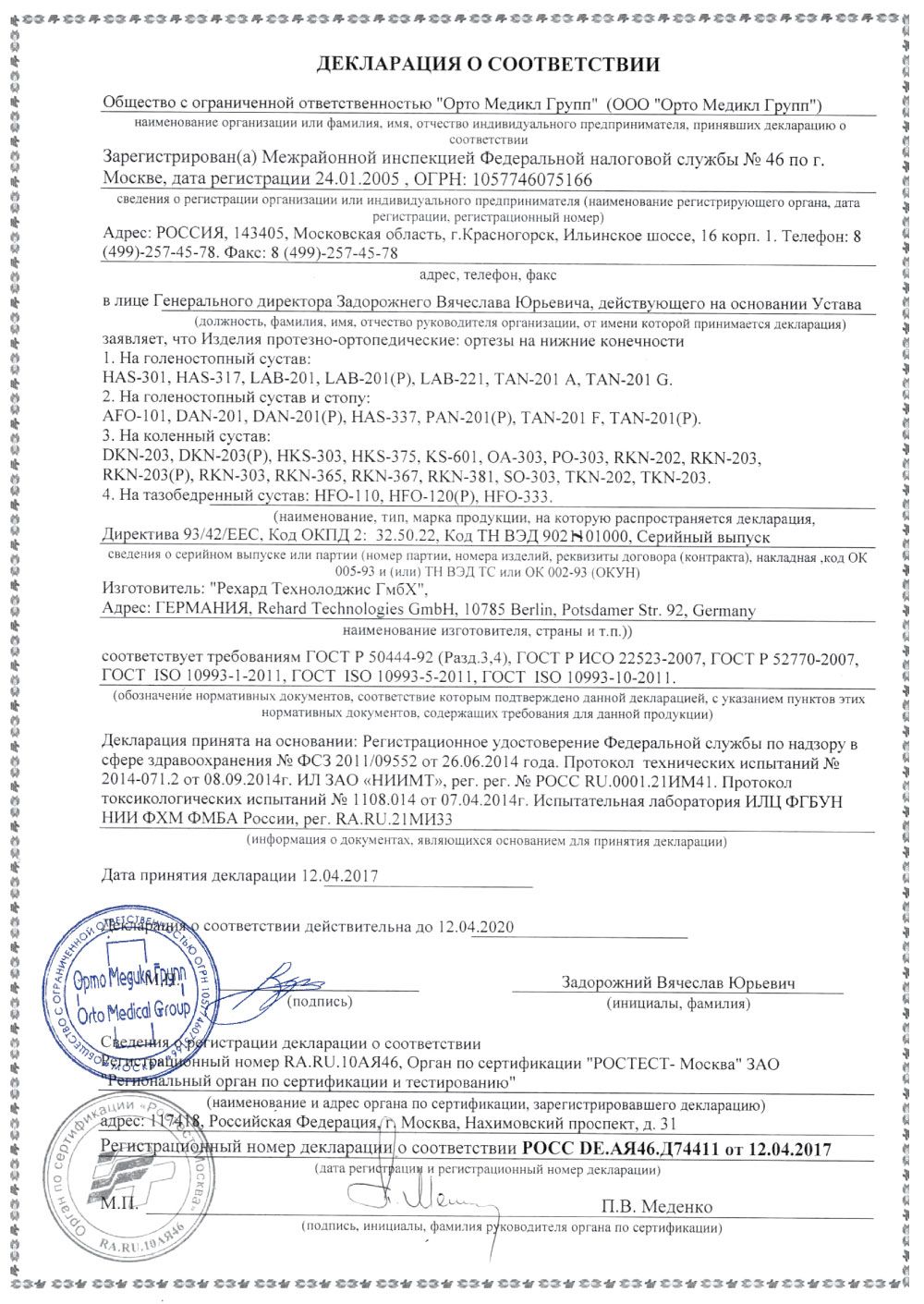 Согласно полученным результатом подобрать ортез Orlett по таблице подбора размеров.